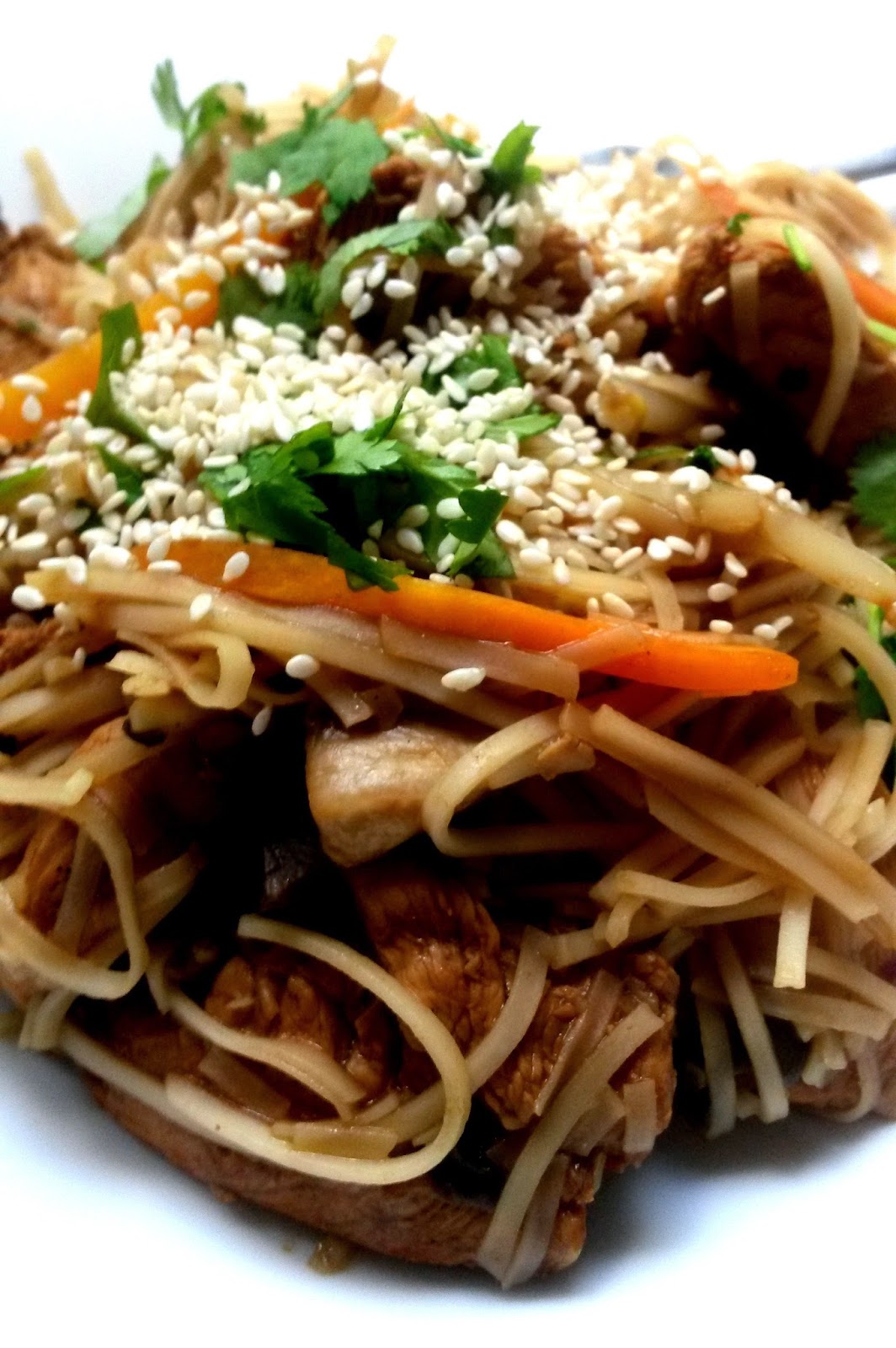 Kolejne szybkie danie i azjatyckim posmaku, który zyskuje dzięki chrupiącym pędom bambusa i grzybom mun. Tym razem podane z pszennym makaronem Mie, cieniutki i delikatny makaron wspaniale pasuje do chrupiących dodatków.
